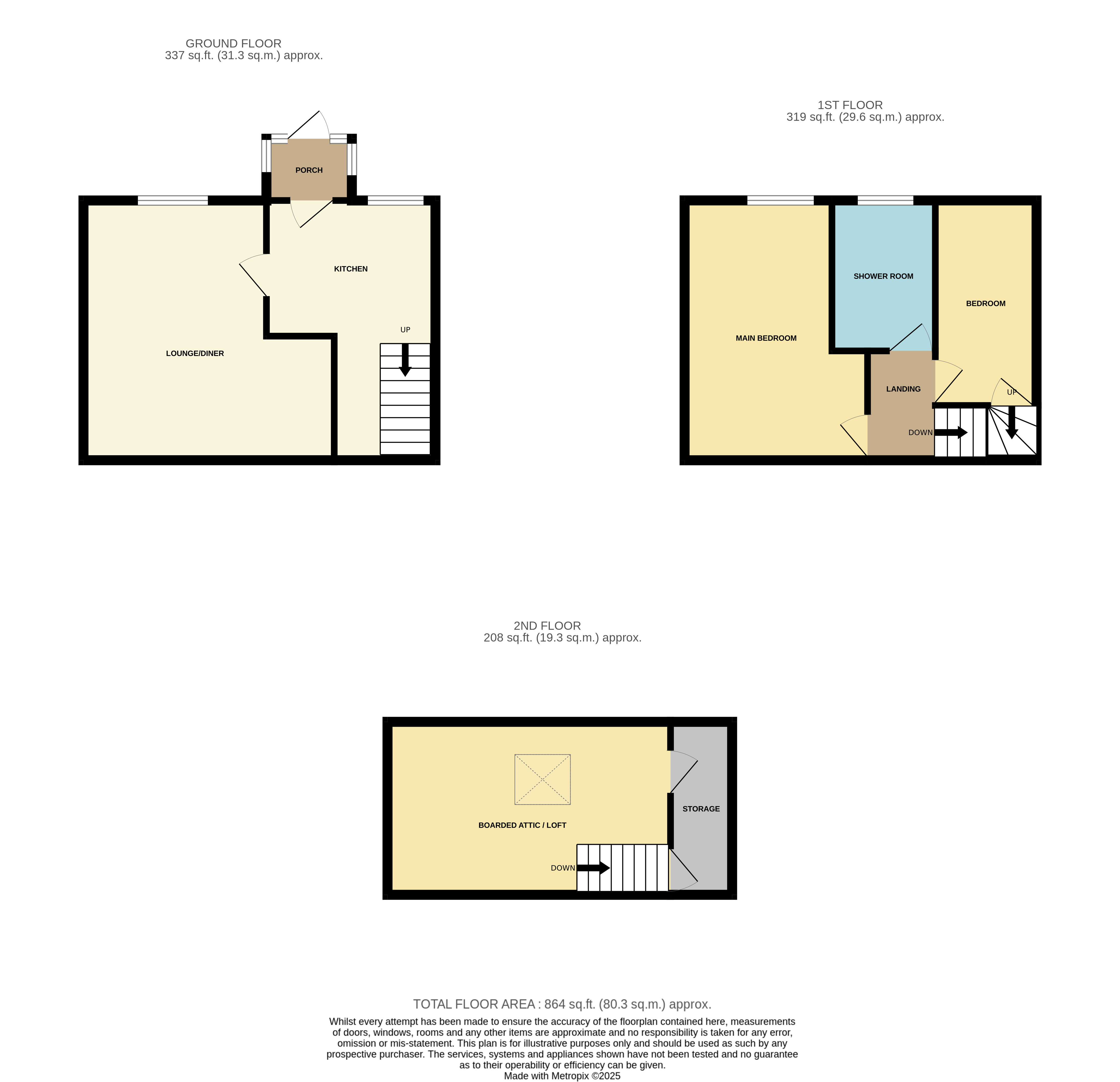 Stairs from the kitchen rise to the 1st floor landing, which provides access to the main and second bedrooms and large shower room.