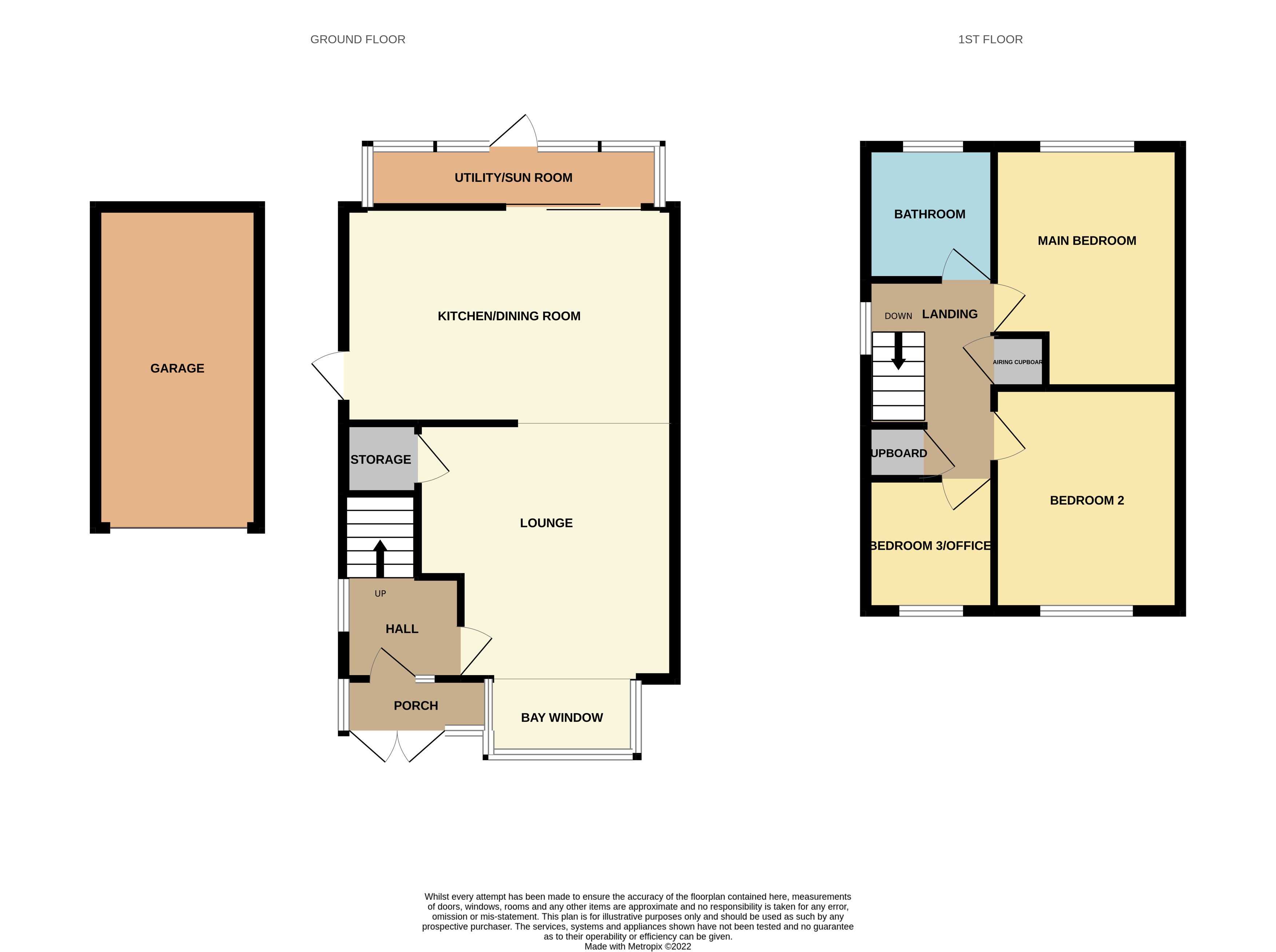 Stairs from the hall rise to the 1st floor landing, which provides access to all 3 bedrooms and the bathroom. There is an integrated storage cupboard utilising space above the staircase, and an integrated airing cupboard.